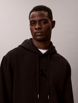 Fleece Monogram Logo Patch Relaxed Hoodie