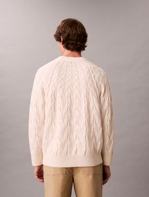 • intricate cable knit in a lambswool blend