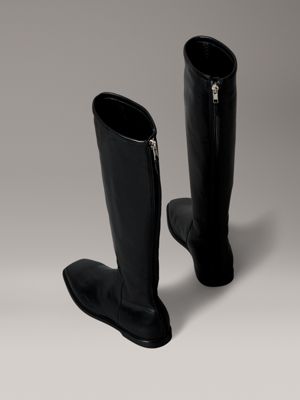 Nappa Leather Square Toe Zip Knee Boots