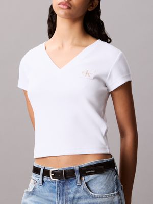 Ribbed Cotton V-Neck T-shirt